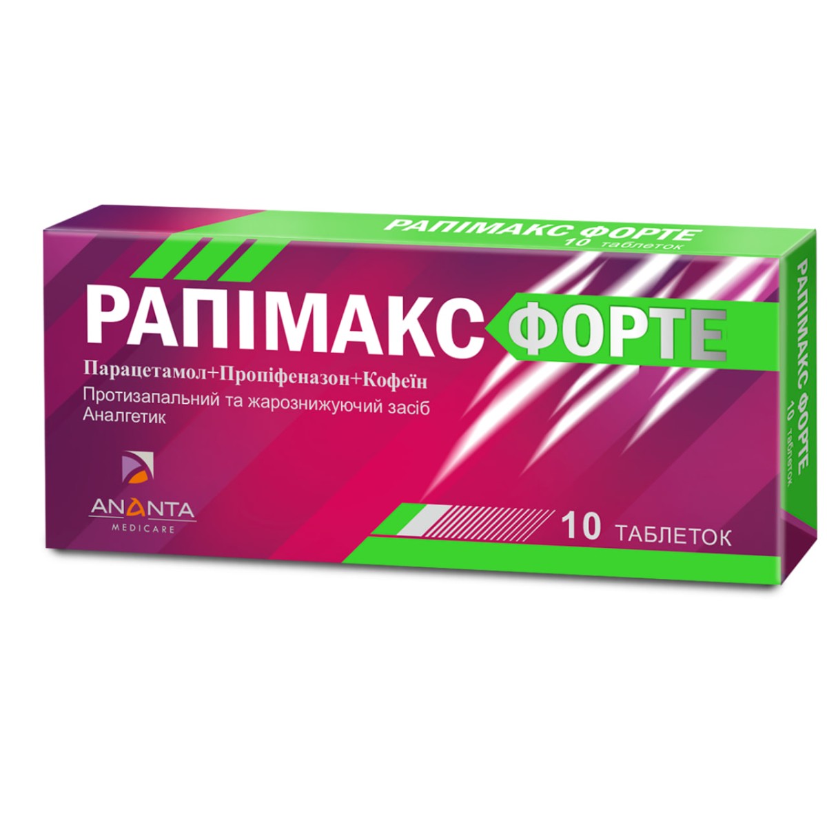 RAPIMAX FORTE is effective for the symptomatic treatment of headache, toothache, menstrual pain, postoperative pain, rheumatic pain, and feverish conditions during colds and flu in adults and children over 12 years of age. RAPIMAX FORTE is available in convenient packs of 10 tablets, which are very convenient to keep on hand and be ready to tackle pain under any circumstances.