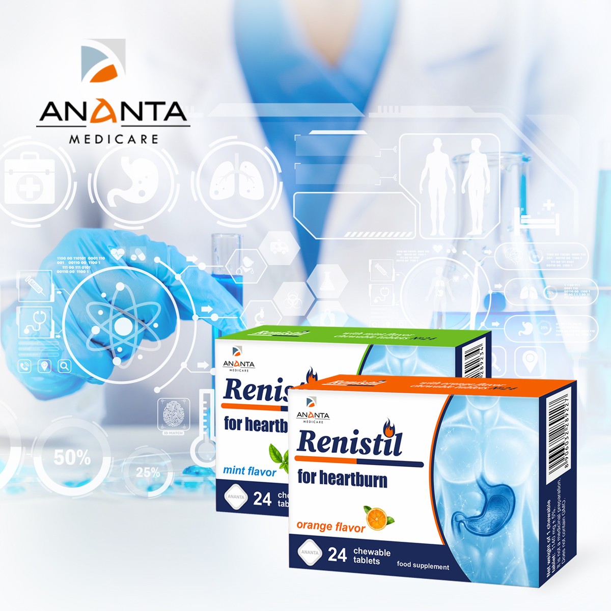 RENISTIL is a modern remedy for heartburn available in chewable tablet form with refreshing mint and orange flavors. RENISTIL helps reduce stomach acidity by neutralizing gastric acid and alleviating the unpleasant sensation of heartburn.