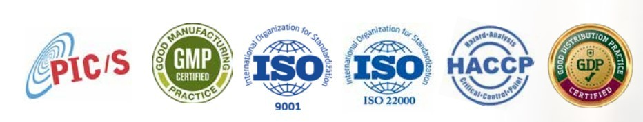 The manufacturing process complies with PIC/S GMP, WHO GMP, ISO 9001, ISO 22000, HACCP standards.