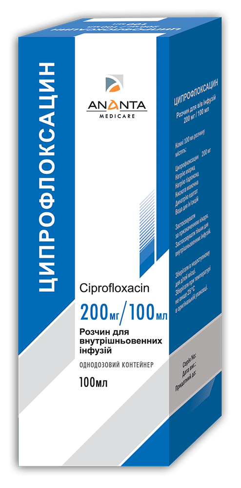 active substance: 100 ml of solution contain 200 mg of ciprofloxacin;